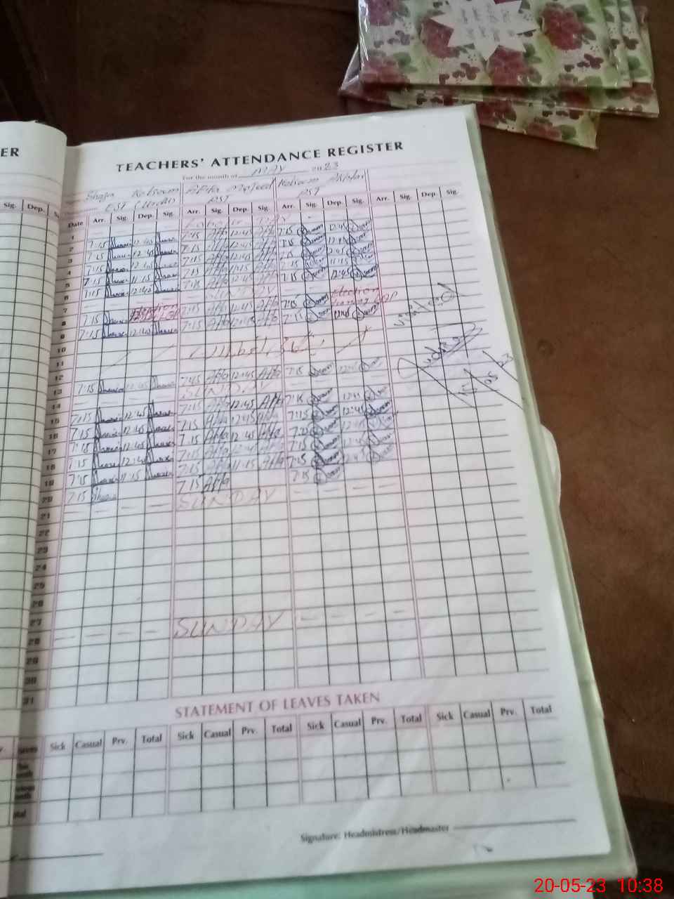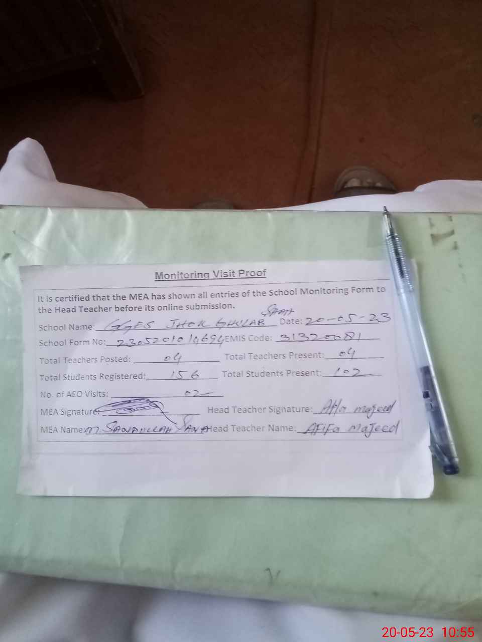 | Attendance Register | Head Teacher | MEA with School | Visit Proof |