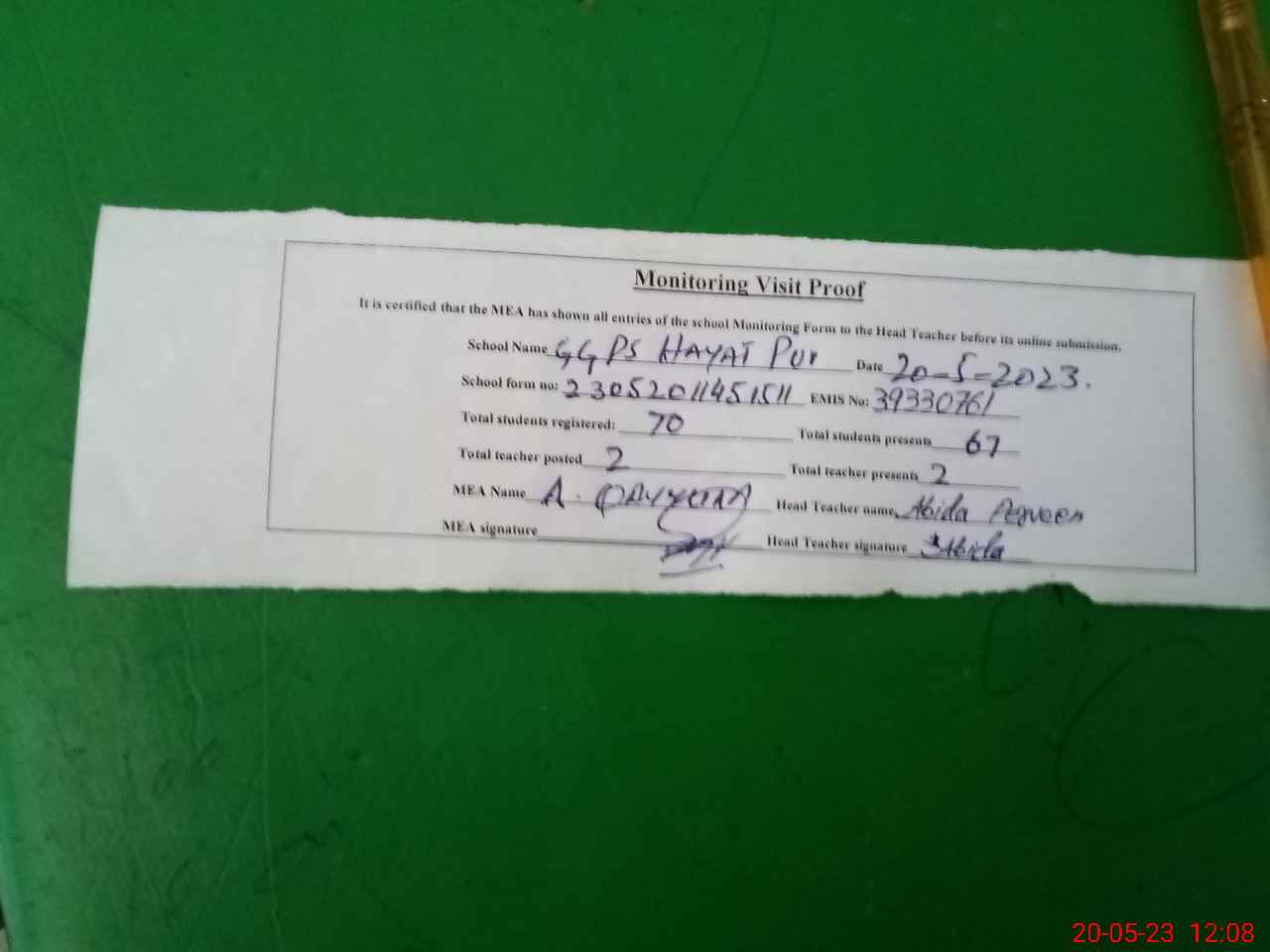 | EMIS Code: 39330761 | Name of School: GGPS HAYAT PUR | |||