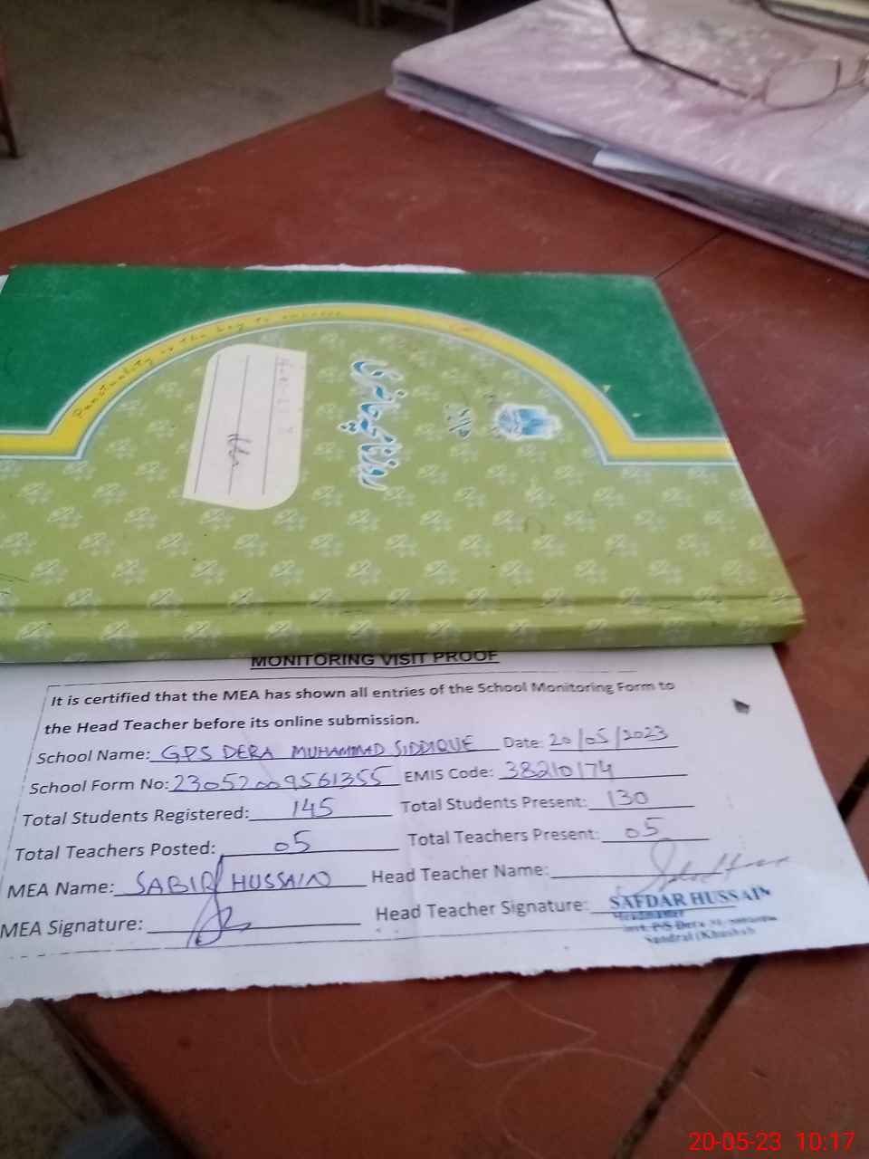 | EMIS Code: 38210174 | Name of School: GPS DERA MUHAMMAD SIDDIQUE | |||
