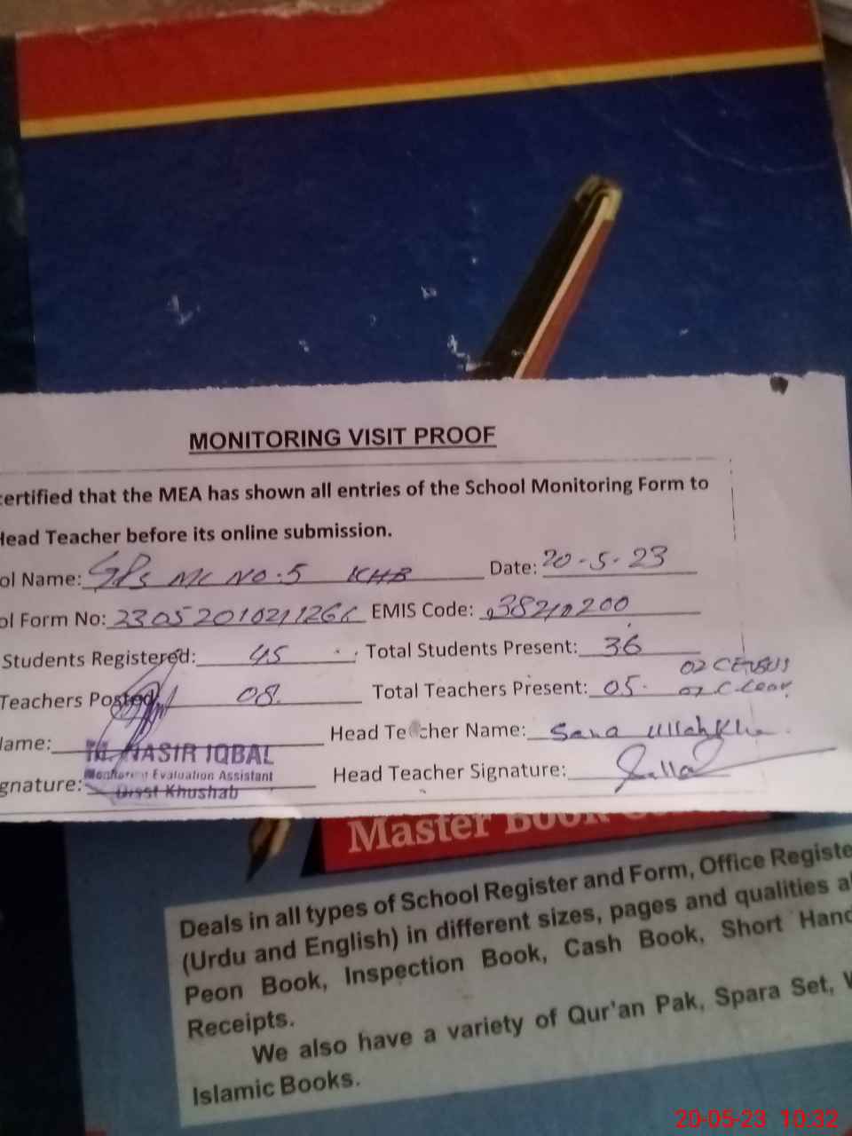 | EMIS Code: 38210200 | Name of School: GPS MC NO. 5 KHUSHAB | |||