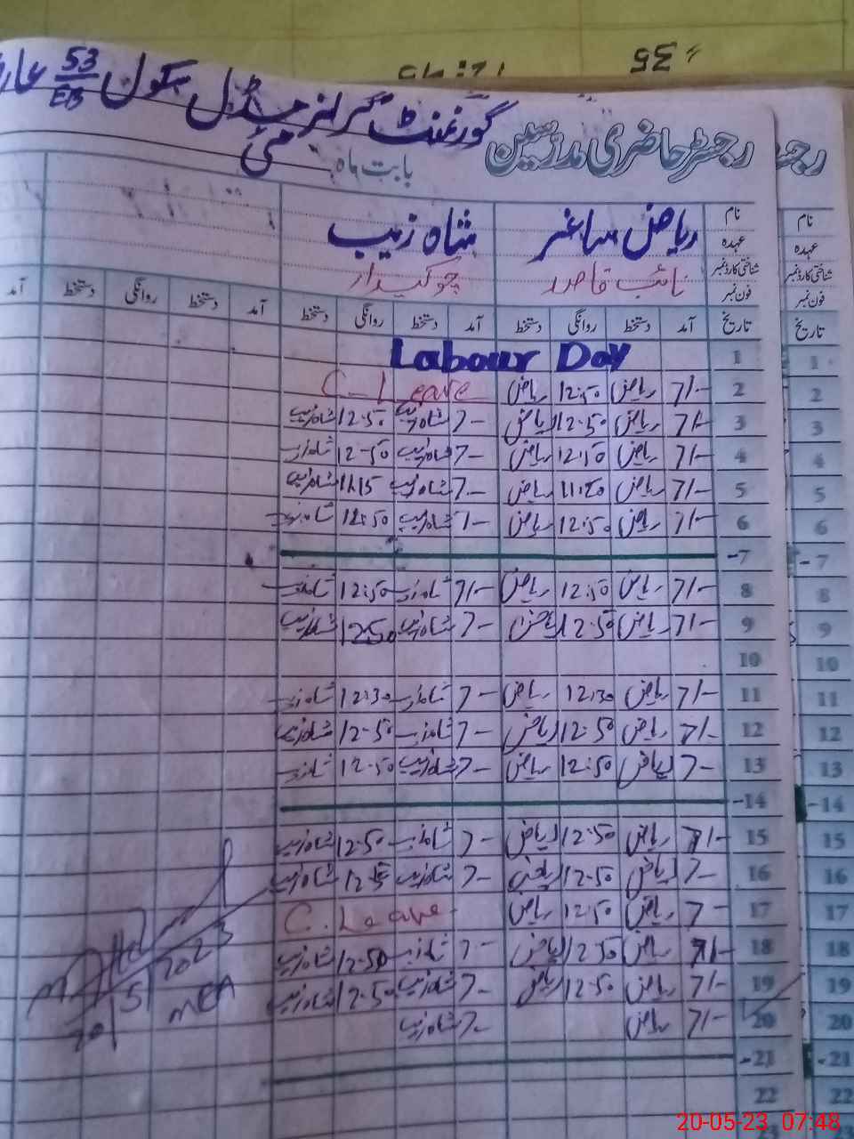 | CNIC | Full Name | Designation | R/C | Absence During Last Calender Month |