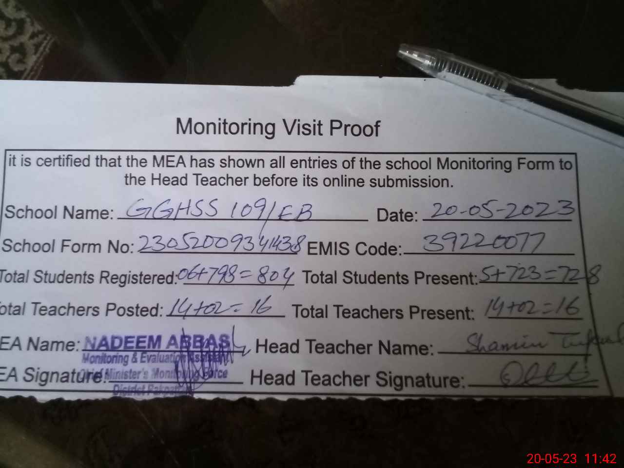 | EMIS Code: 39220077 | Name of School: GGHSS 109 EB | |||