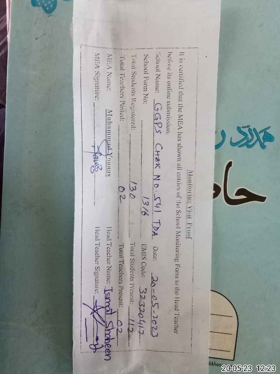 | EMIS Code: 32320417 | Name of School: GGPS CHAK NO. 541 TDA | |||