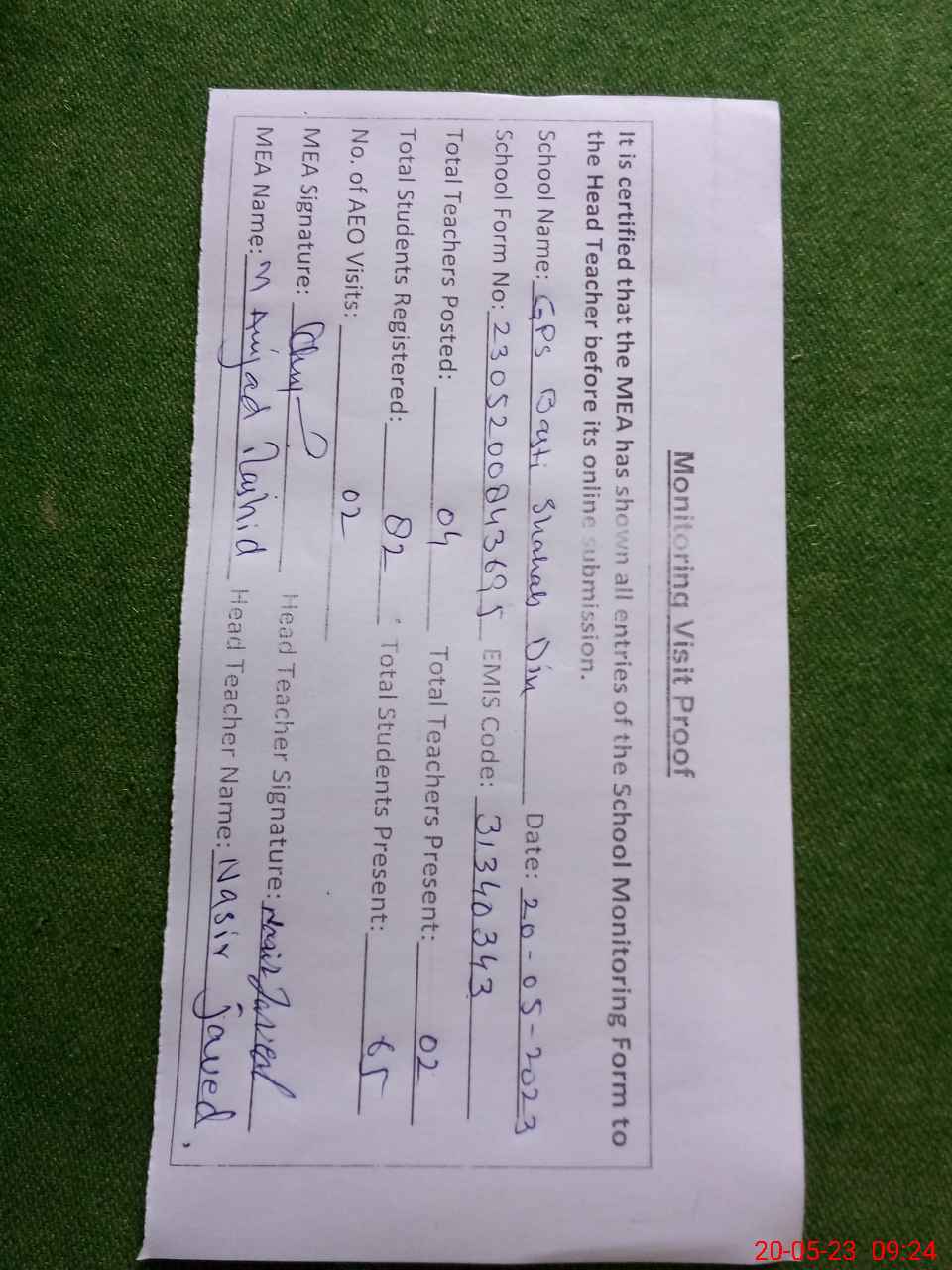 | EMIS Code: 31340343 | Name of School: GPS BASTI SHAHAB DIN | |||