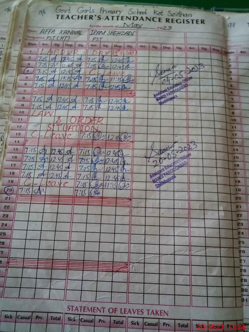 | Leave | Duty | Absent | Maternity | Medical | Ex- Pak |