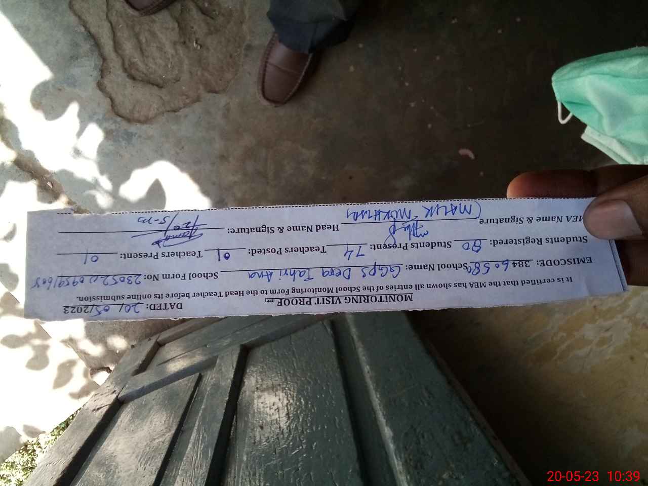 | Attendance Register | Head Teacher | MEA with School | Visit Proof |