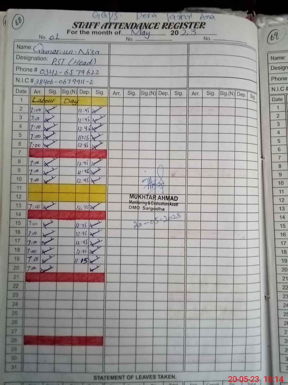 | Name: Qa**** UnNi**** Designation: (School Headmaster's/Headmistress's) PST Phone/Cell Number: 03**** |