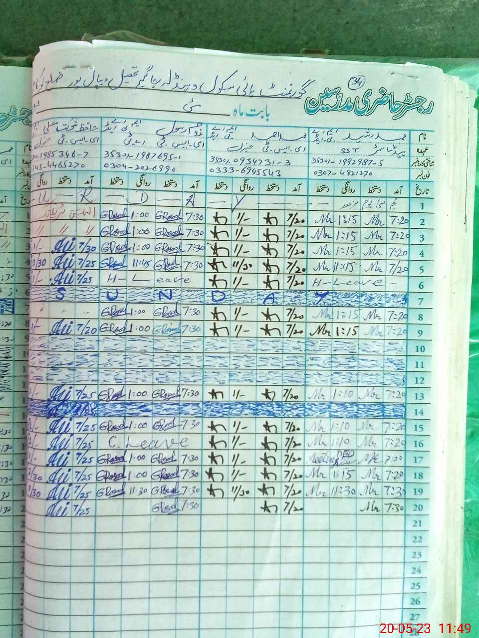| CNIC | Full Name | Designation | R/C | Absence During Last Calender Month |