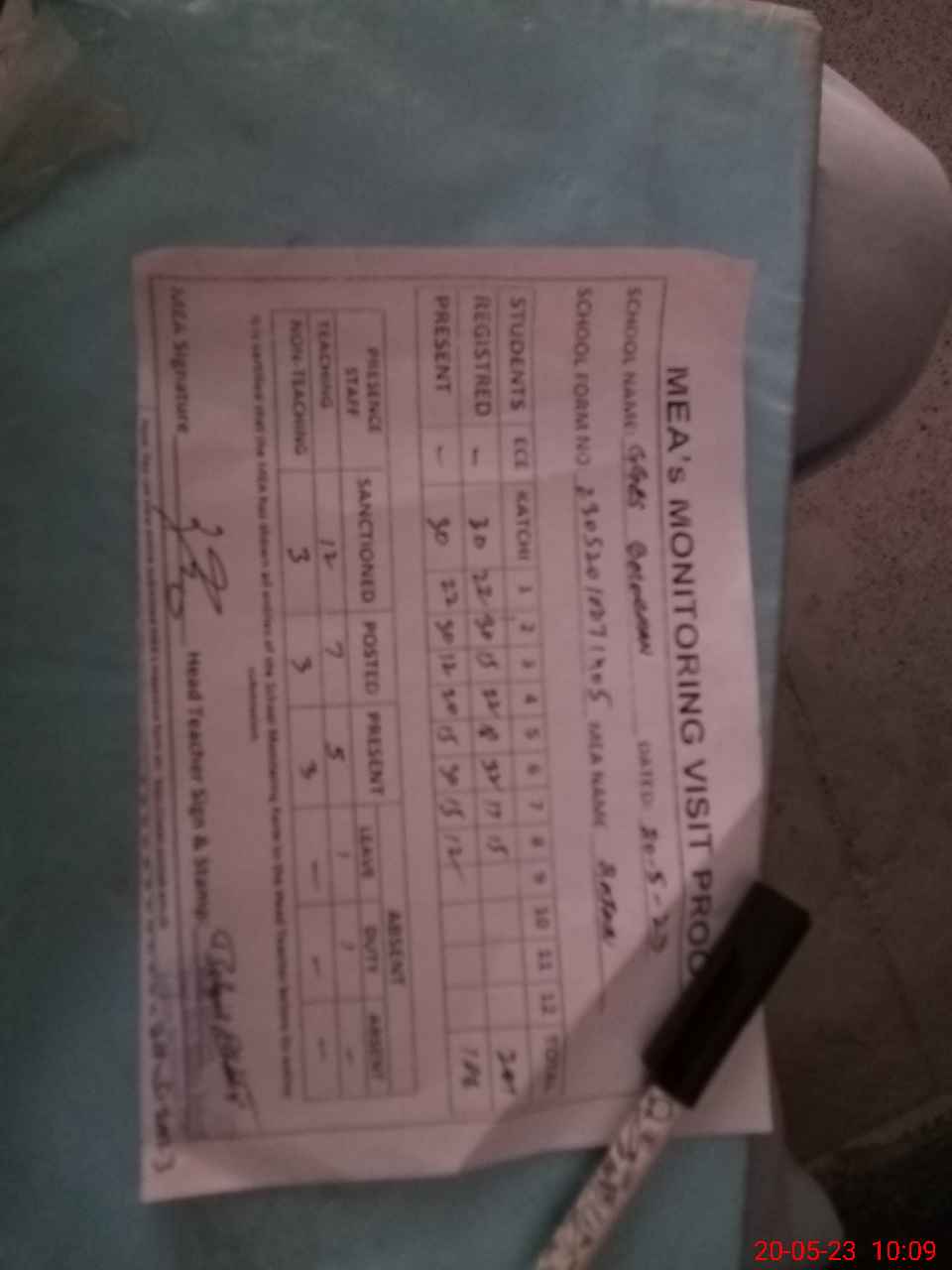 | Attendance Register | Head Teacher | MEA with School | Visit Proof |
