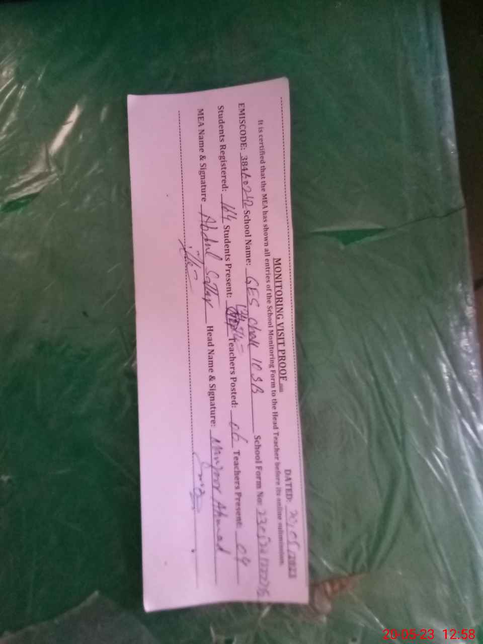| EMIS Code: 38460242 | Name of School: GES CHAK NO.10 SB | |||