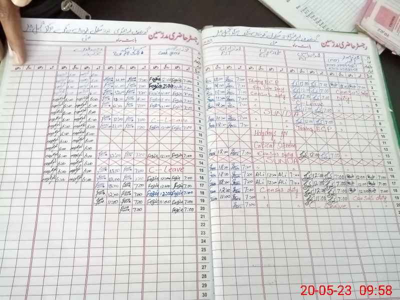 | CNIC | Full Name | Designation | R/C | Absence During Last Calender Month |