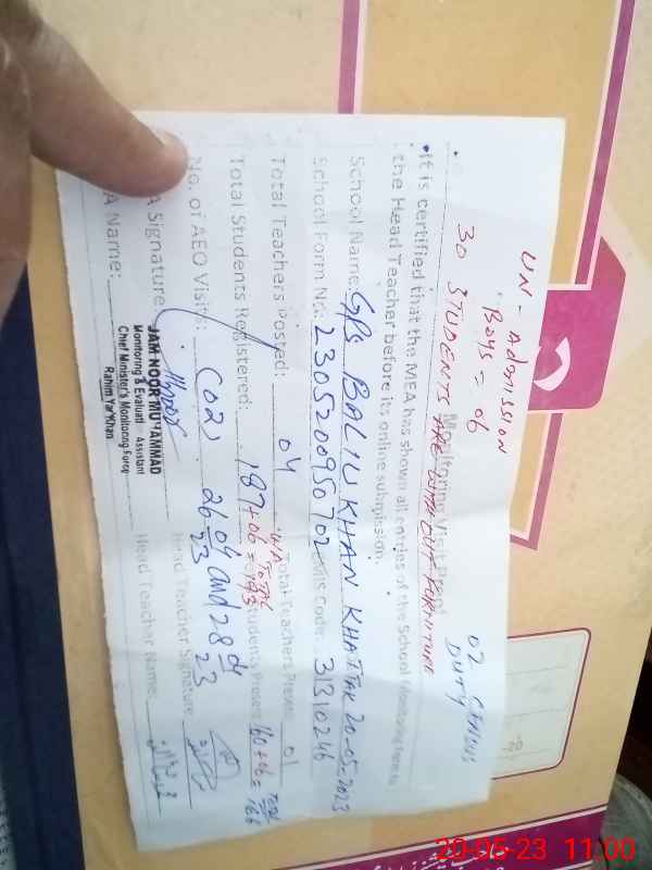 | EMIS Code: 31310246 | Name of School: GPS BALIU KHAN KHATAK (After Noon) | |||
