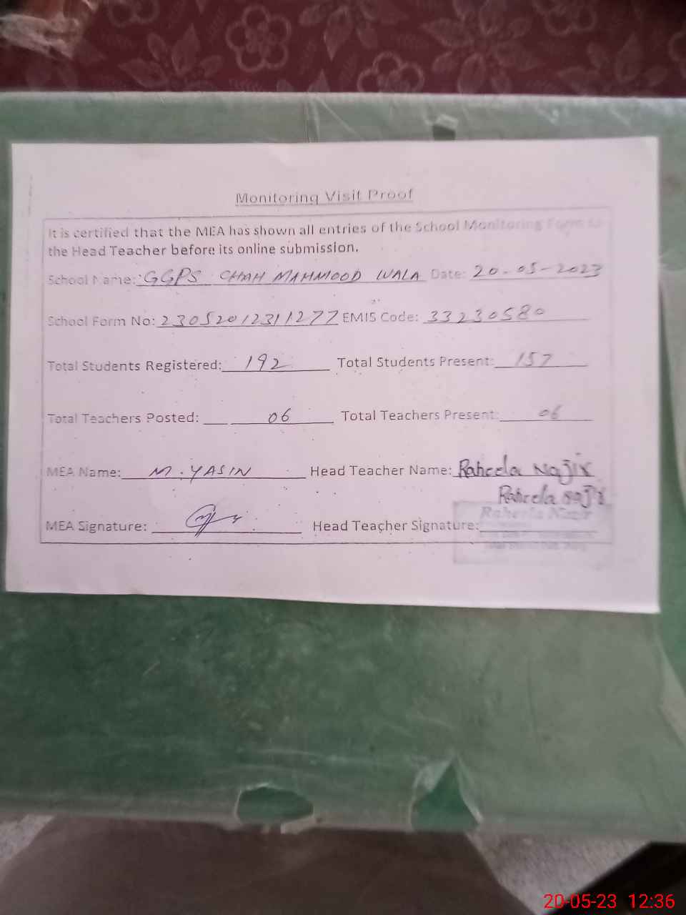 | EMIS Code: 33230580 | Name of School: GGPS CHAH MEHMOOD WALA | |||