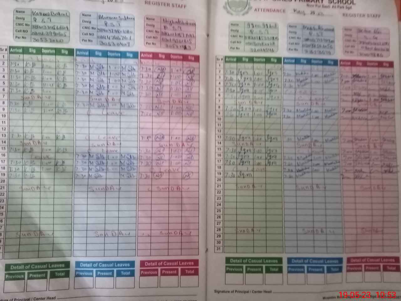 | CNIC | Full Name | Designation | R/C | Absence During Last Calender Month |