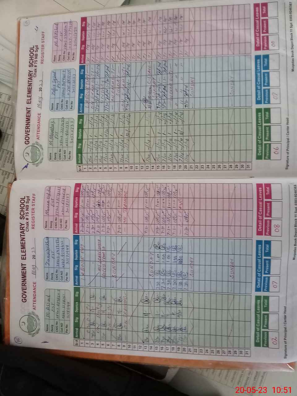 | CNIC | Full Name | Designation | R/C | Absence during last cal. month |
