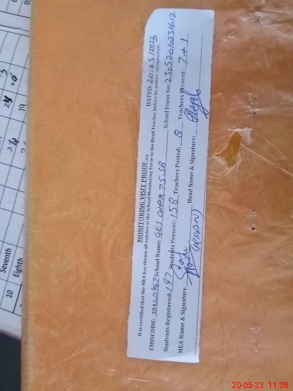 | Attendance Register | Head Teacher | MEA with School | Visit Proof |