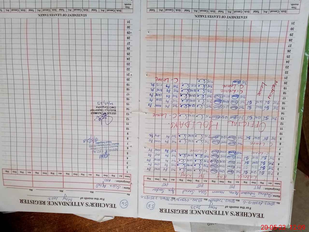| CNIC | Full Name | Designation | R/C | Absence During Last Calender Month |