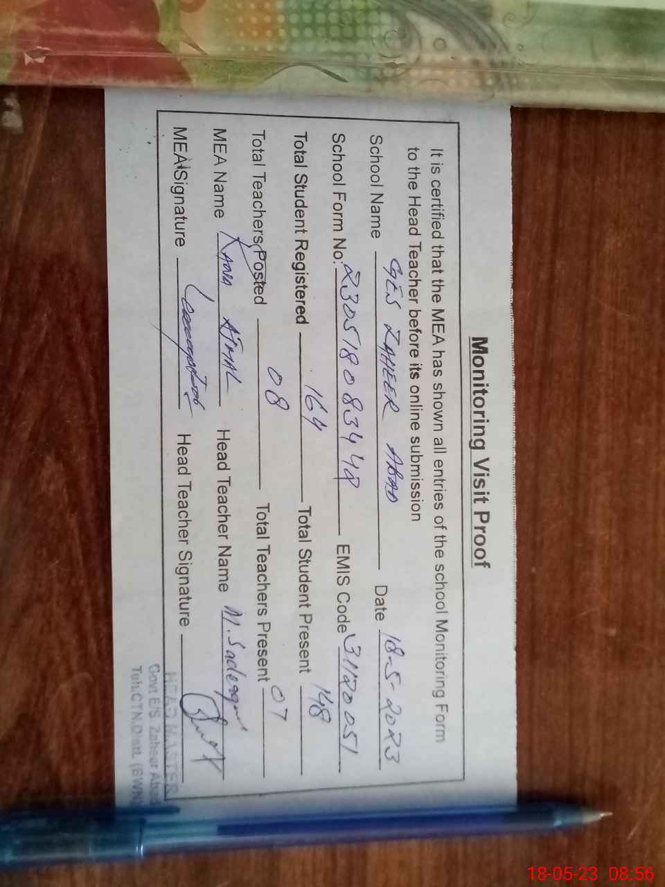 | EMIS Code: 31120051 | Name of School: GES ZAHEER ABAD CHISHTIAN | |||
