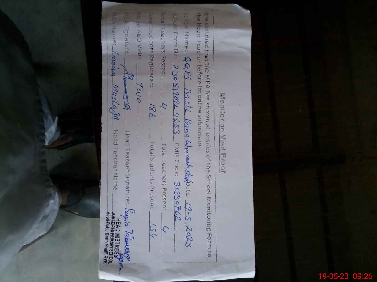 | Certified that this School was Inspected by the Undersigned MEA/DMO Today and the Information Stated Above is as Per Record. | |||||