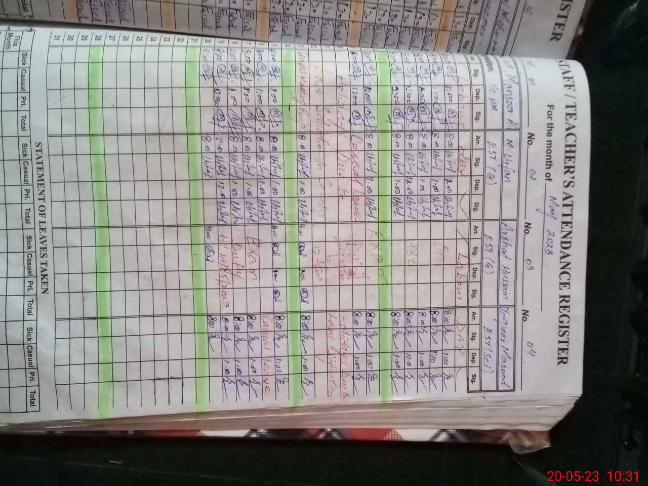 | Leave | Duty | Absent | Maternity | Medical | Ex- Pak |