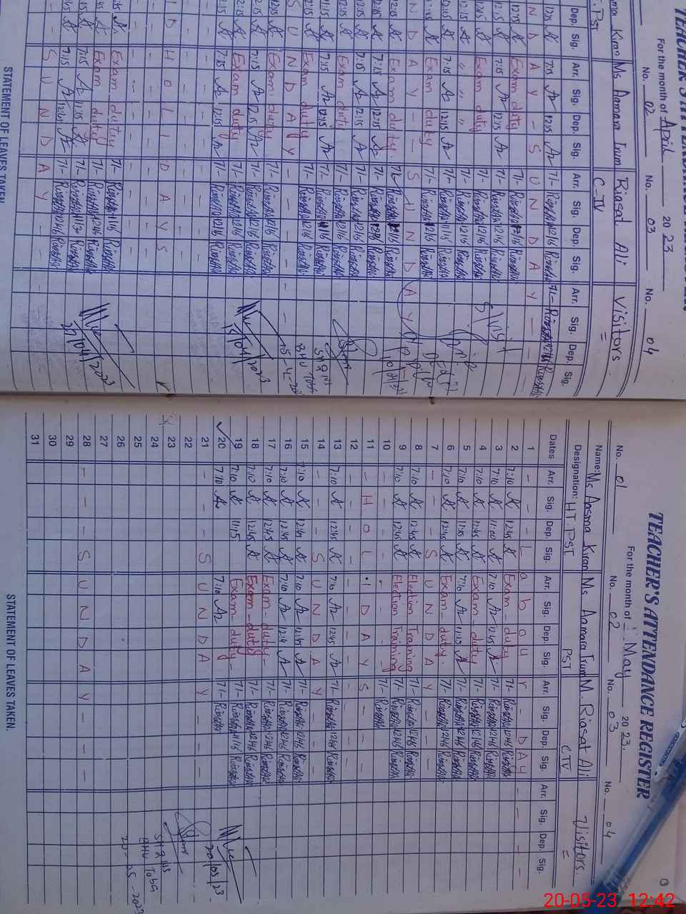 | Attendance Register | Head Teacher | MEA with School | Visit Proof |