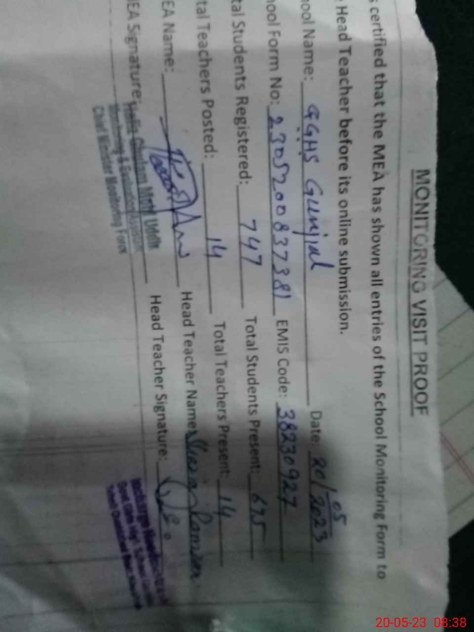 | EMIS Code: 38230927 | Name of School: GGHS GUNJIAL | |||
