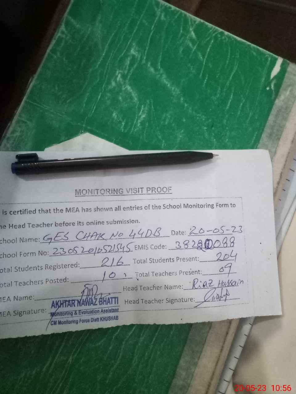 | EMIS Code: 38220088 | Name of School: GES CHAK NO. 44/DB | |||
