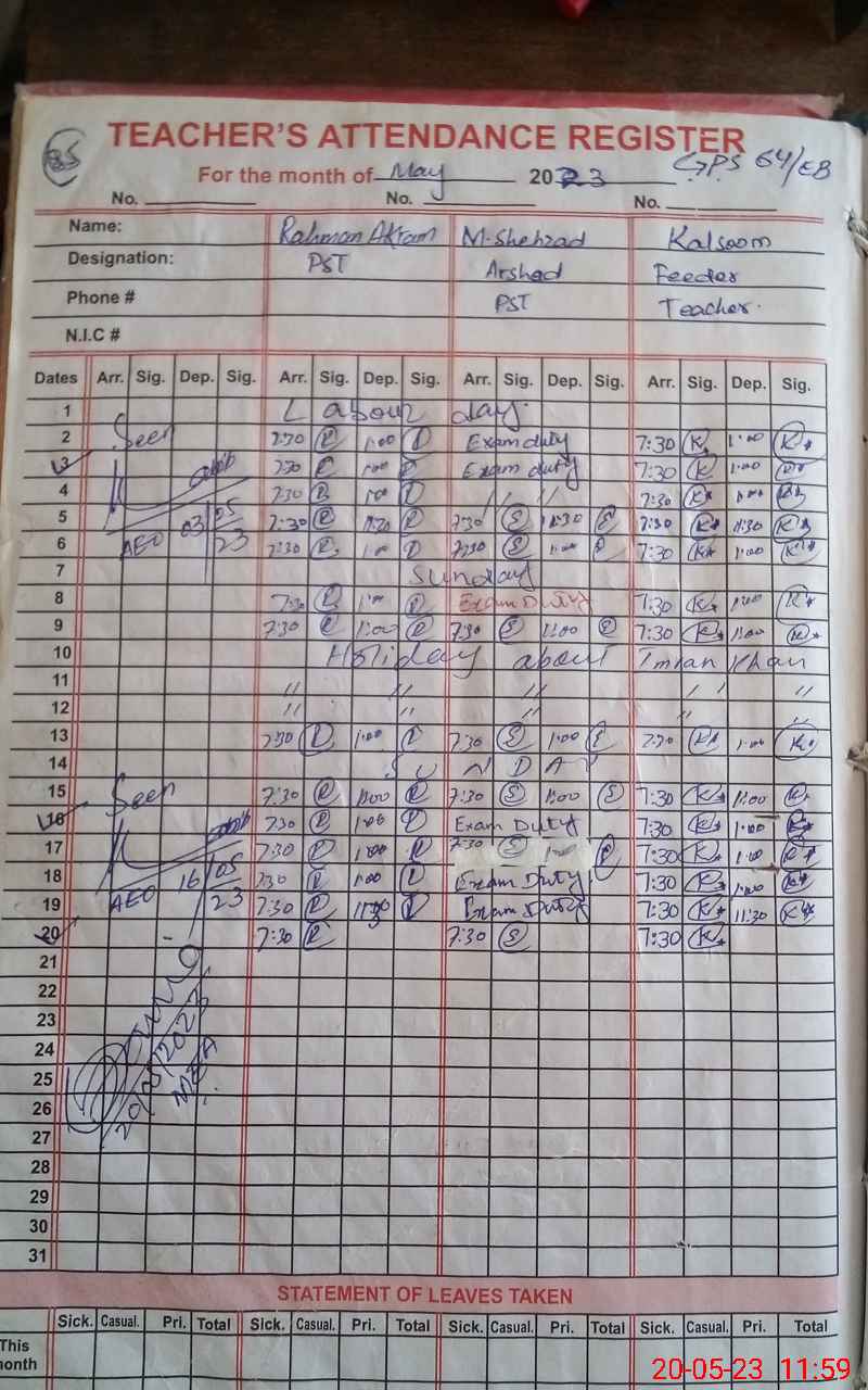 | CNIC | Full Name | Designation | R/C | Absence During Last Calender Month |