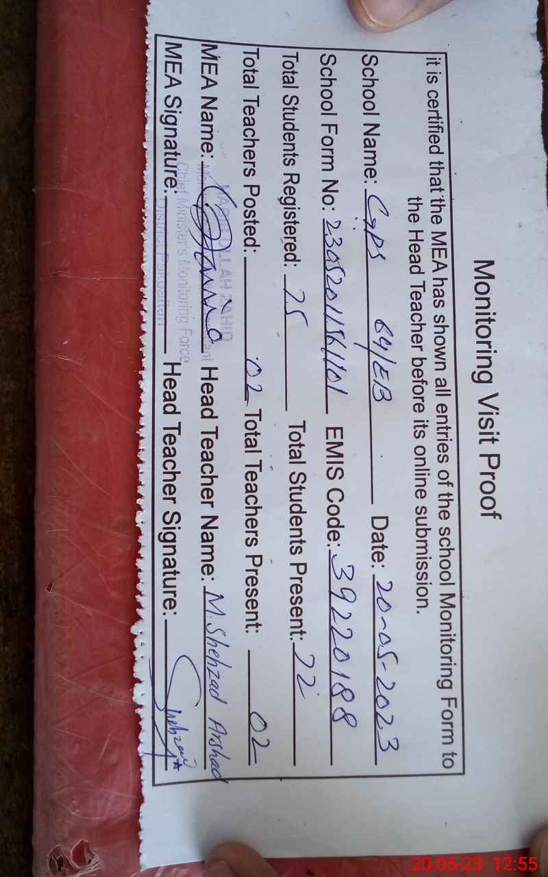 | EMIS Code: 39220188 | Name of School: GPS 64 EB ARIFWALA | |||