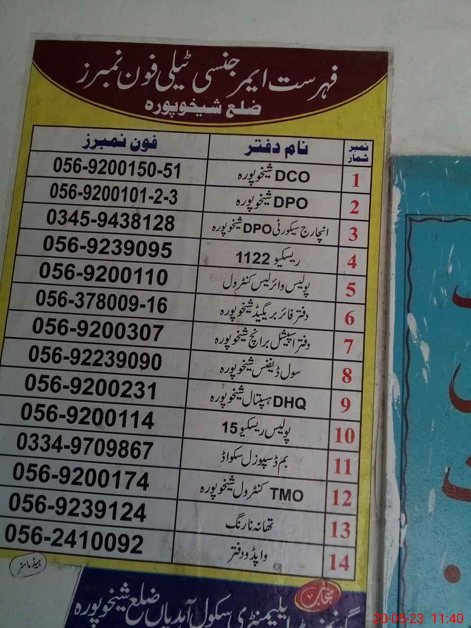 | District: SHEIKHUPURA | Tehsil: MURIDKE | Markaz: AHDIAN-MALE | Level: Middle | |
