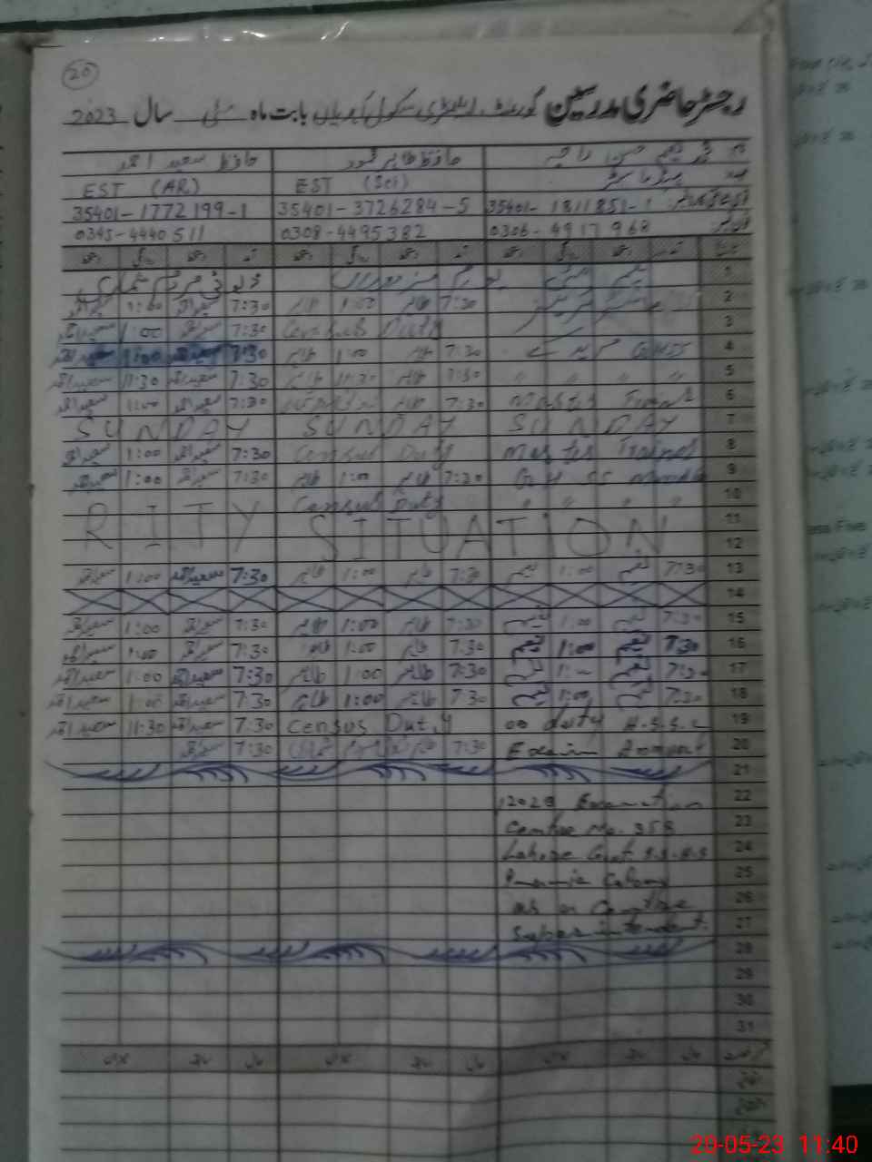 | 35**** | Mu**** Na**** Ha**** | Regular | 0 | 9 | 0 | 0 | 0 | 0 | 0 | 0 | 0 | Exam Duty | |