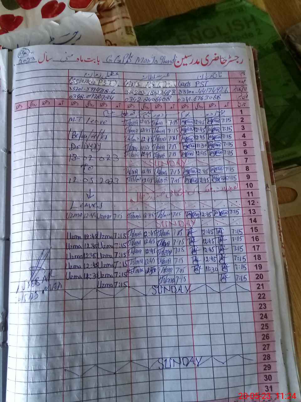 | Leave | Duty | Absent | Maternity | Medical | Ex- Pak |