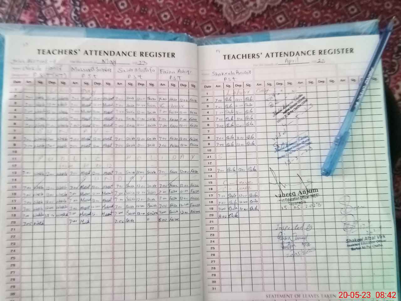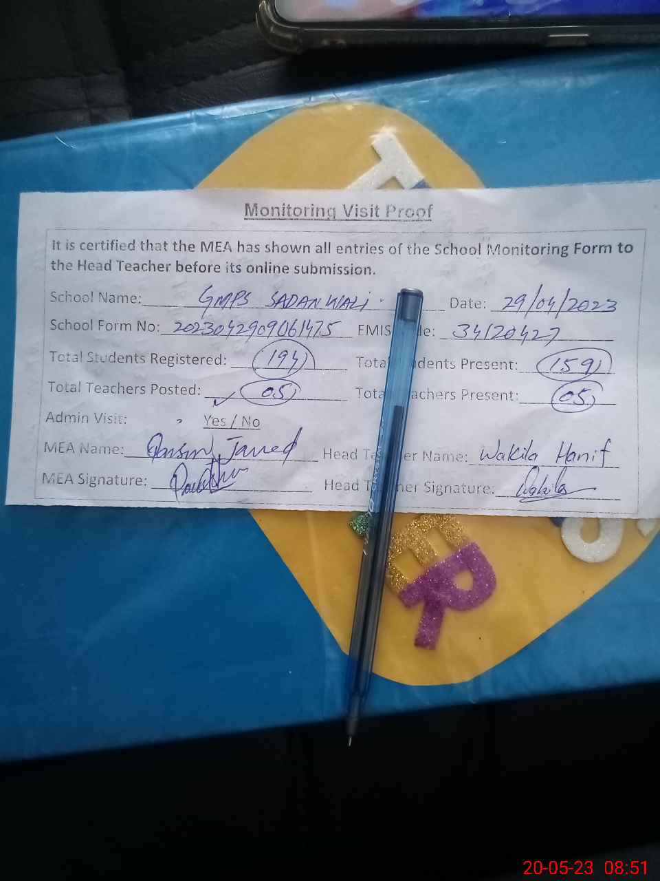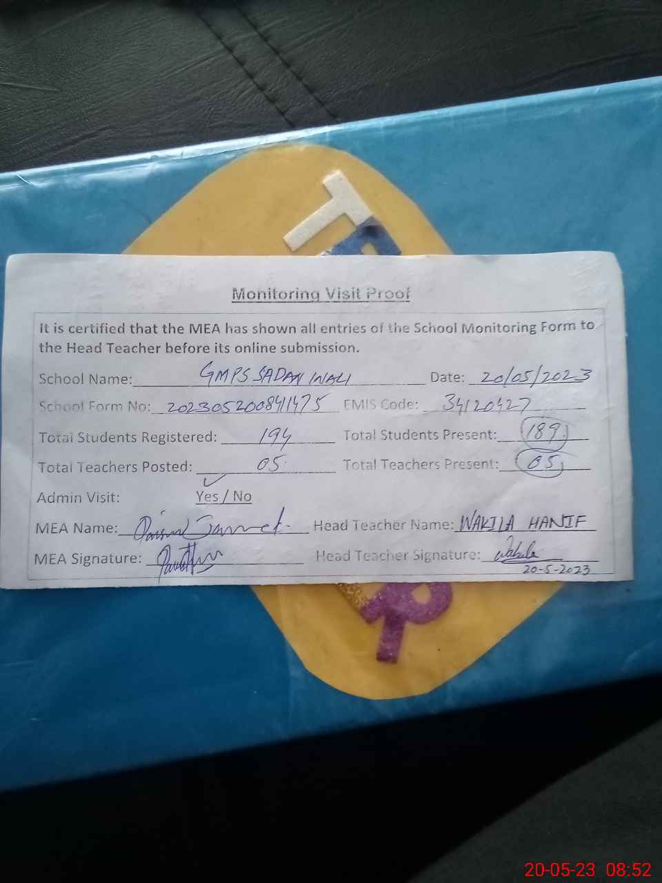 | Attendance Register | Head Teacher | MEA with School | Visit Proof |