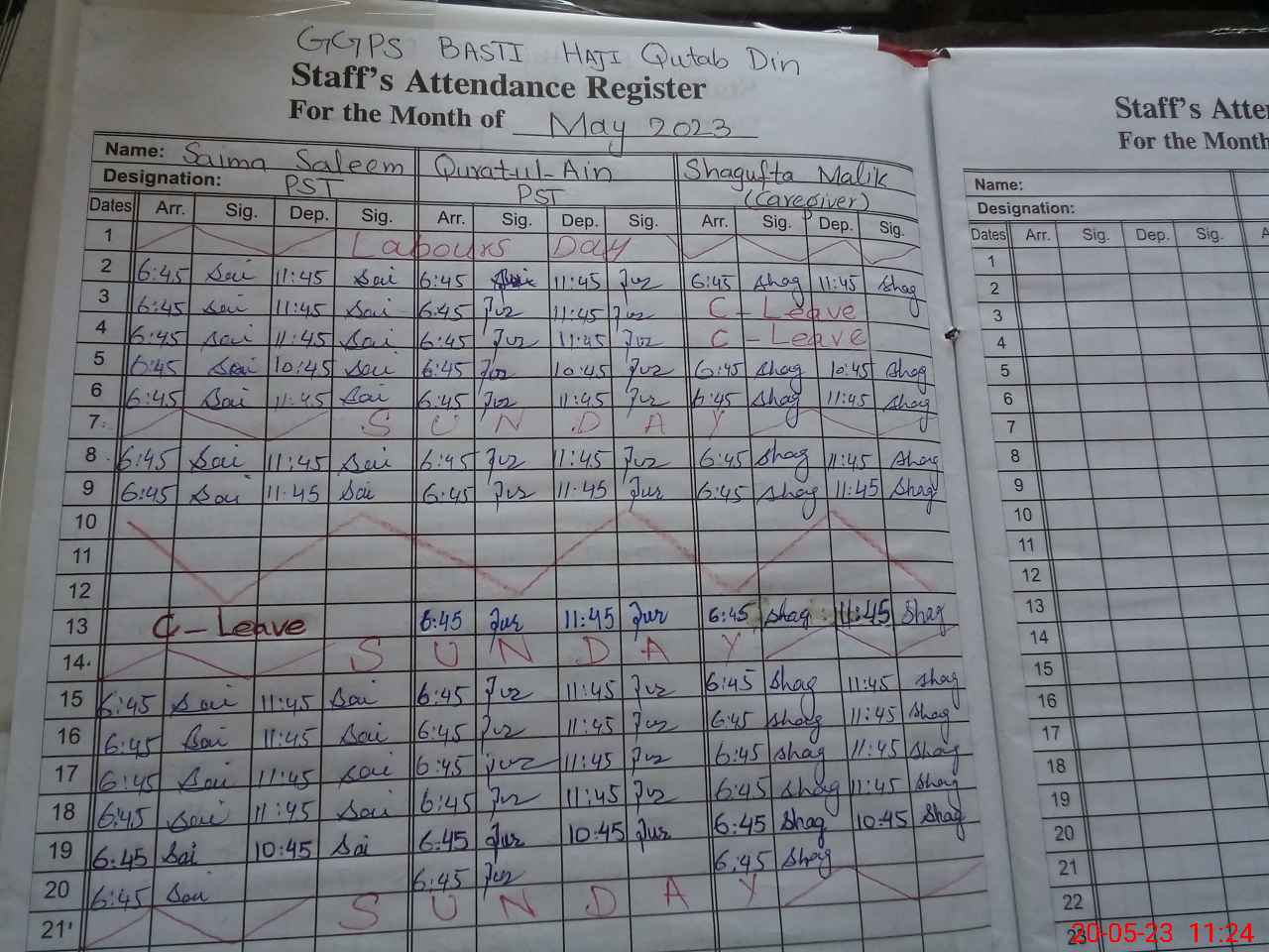 | CNIC | Full Name | Designation | R/C | Absence During Last Calender Month |