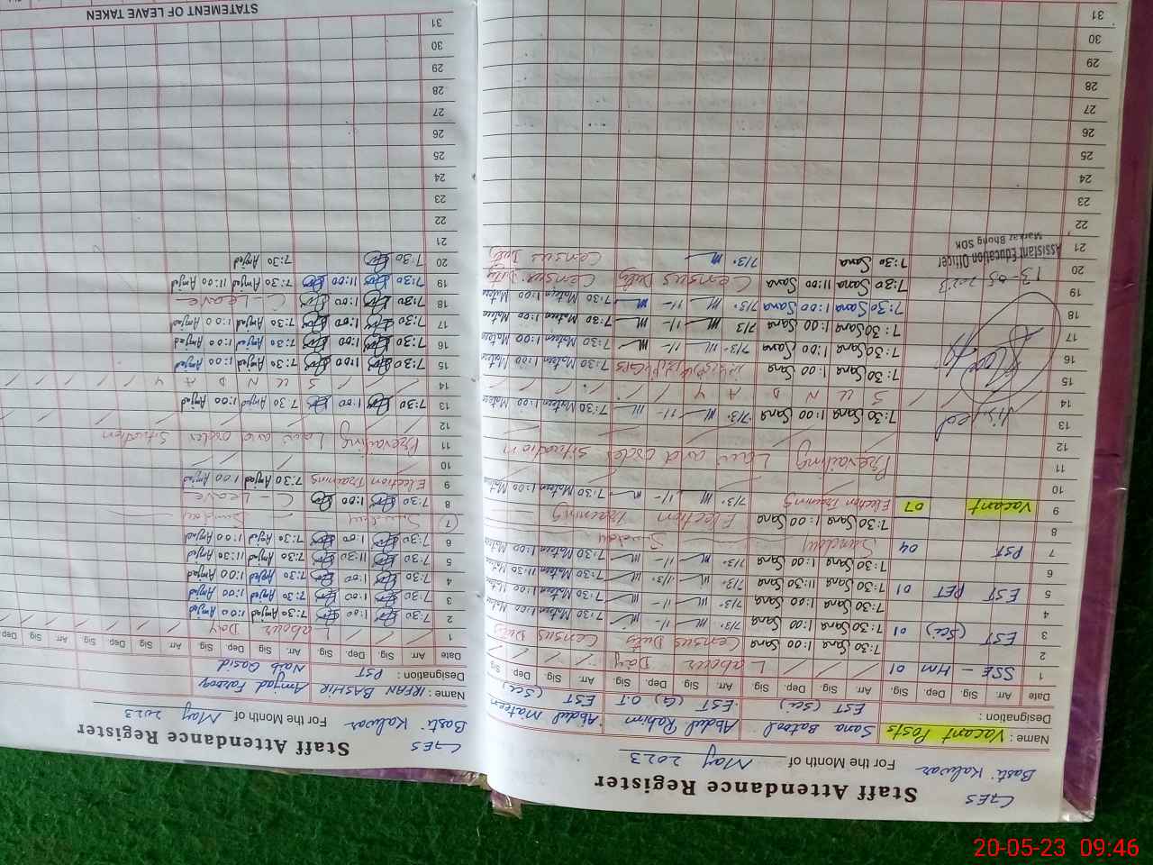 | CNIC | Full Name | Designation | R/C | Absence During Last Calender Month |