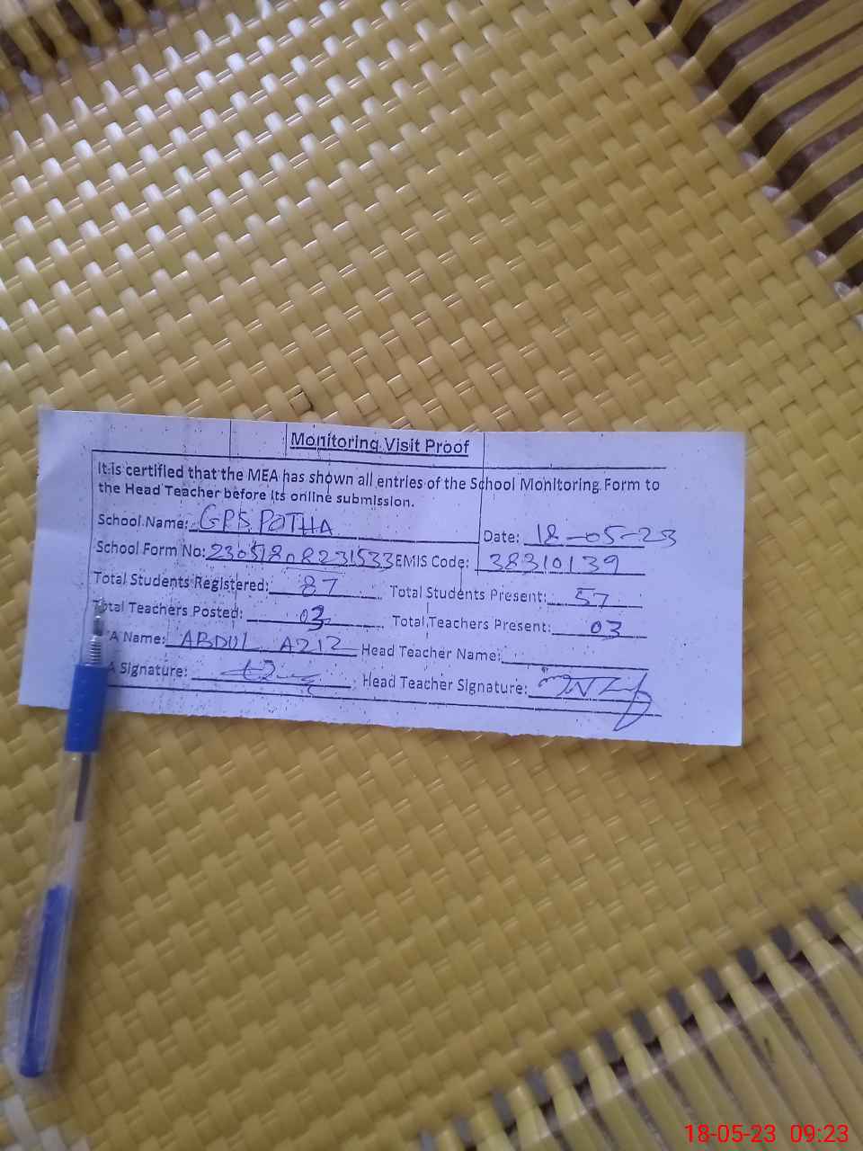 | EMIS Code: 38310139 | Name of School: GPS POTHA | |||