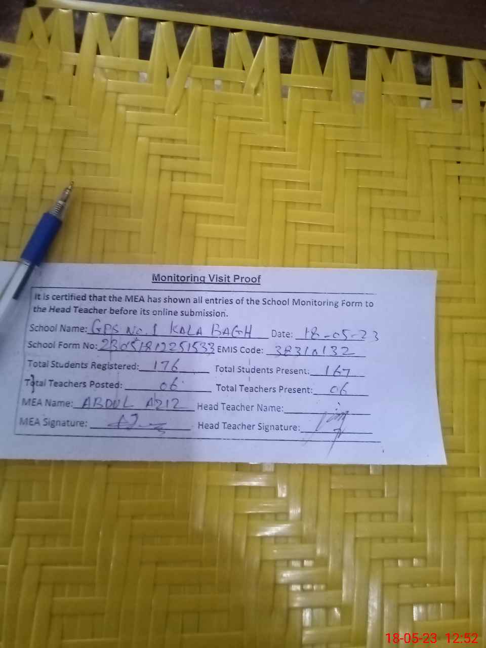 | EMIS Code: 38310132 | Name of School: GPS NO. 1 KALA BAGH | |||