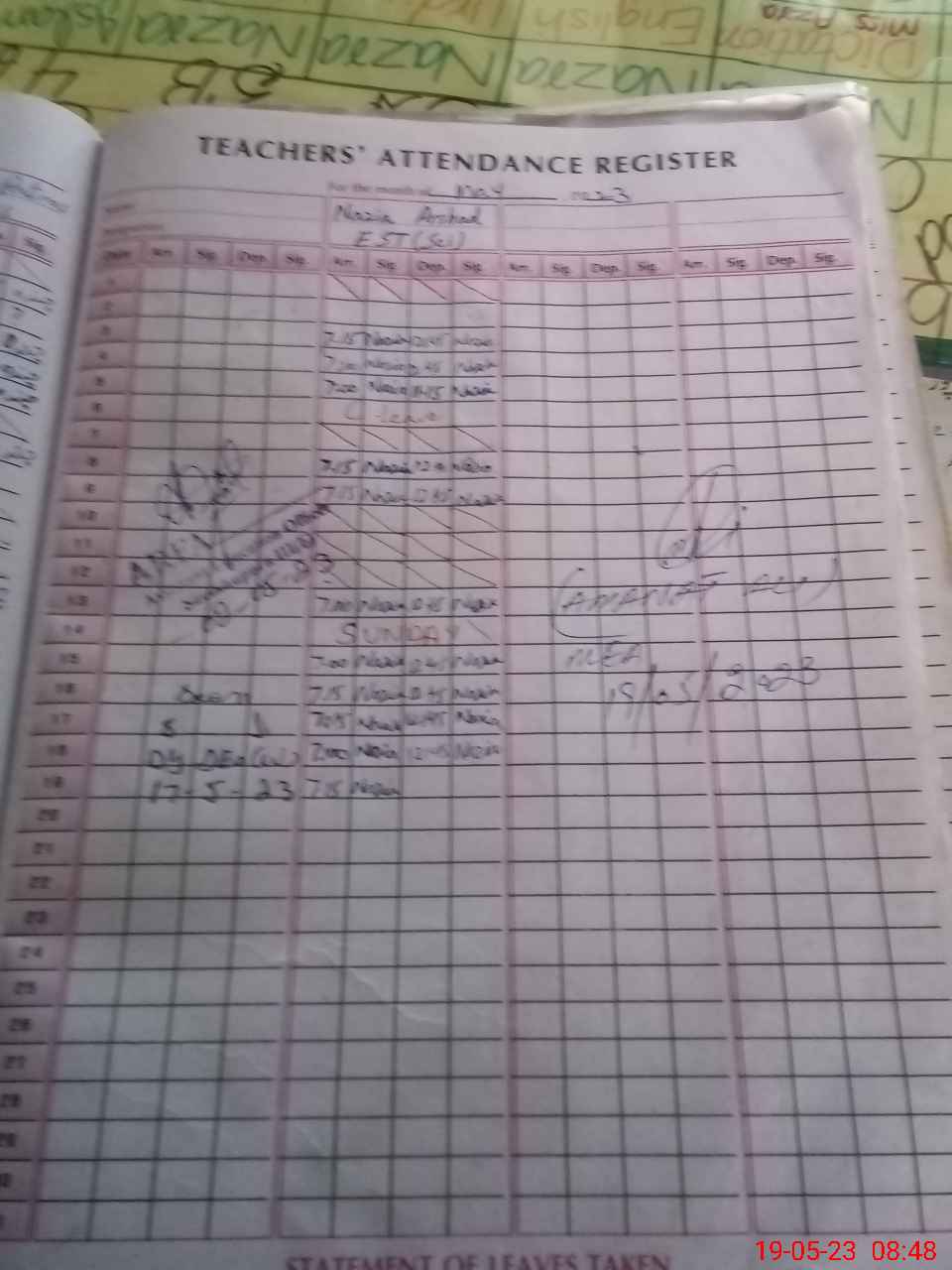 | 35**** | Ri**** Te**** | SST | Regular | 0 | 0 | 0 | 0 | 0 | 0 | 0 | 0 | 0 | Absent (Un-Authorized) |