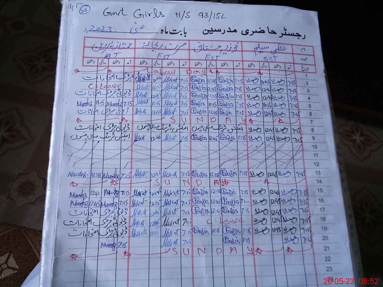 | EMIS Code: 36430089 | Name of School: GGHS MODEL 93/15-L, MIAN CHANNU | |||
