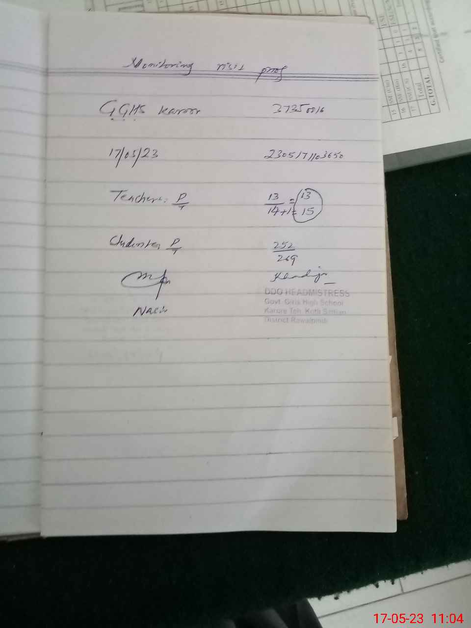 | Attendance Register | Head Teacher | MEA with School | Visit Proof |