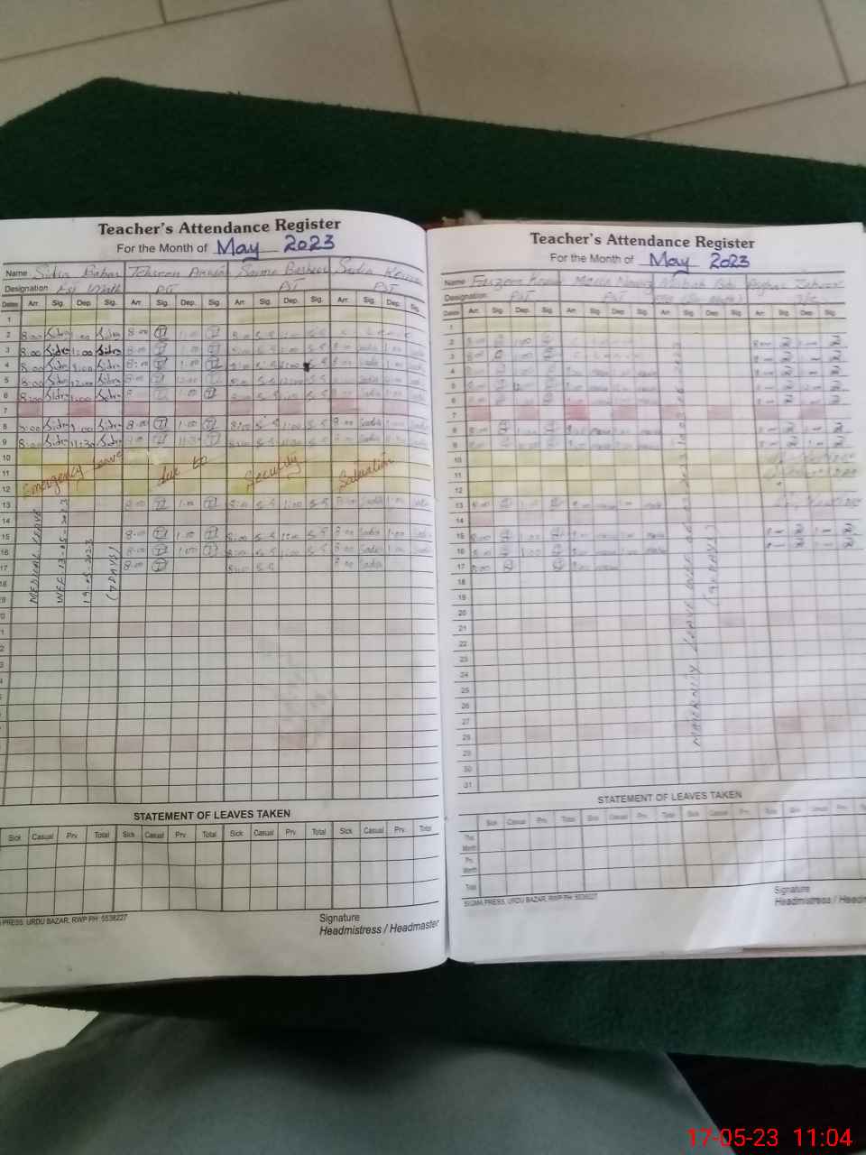| Leave | Duty | Absent | Maternity | Medical | Ex- Pak |