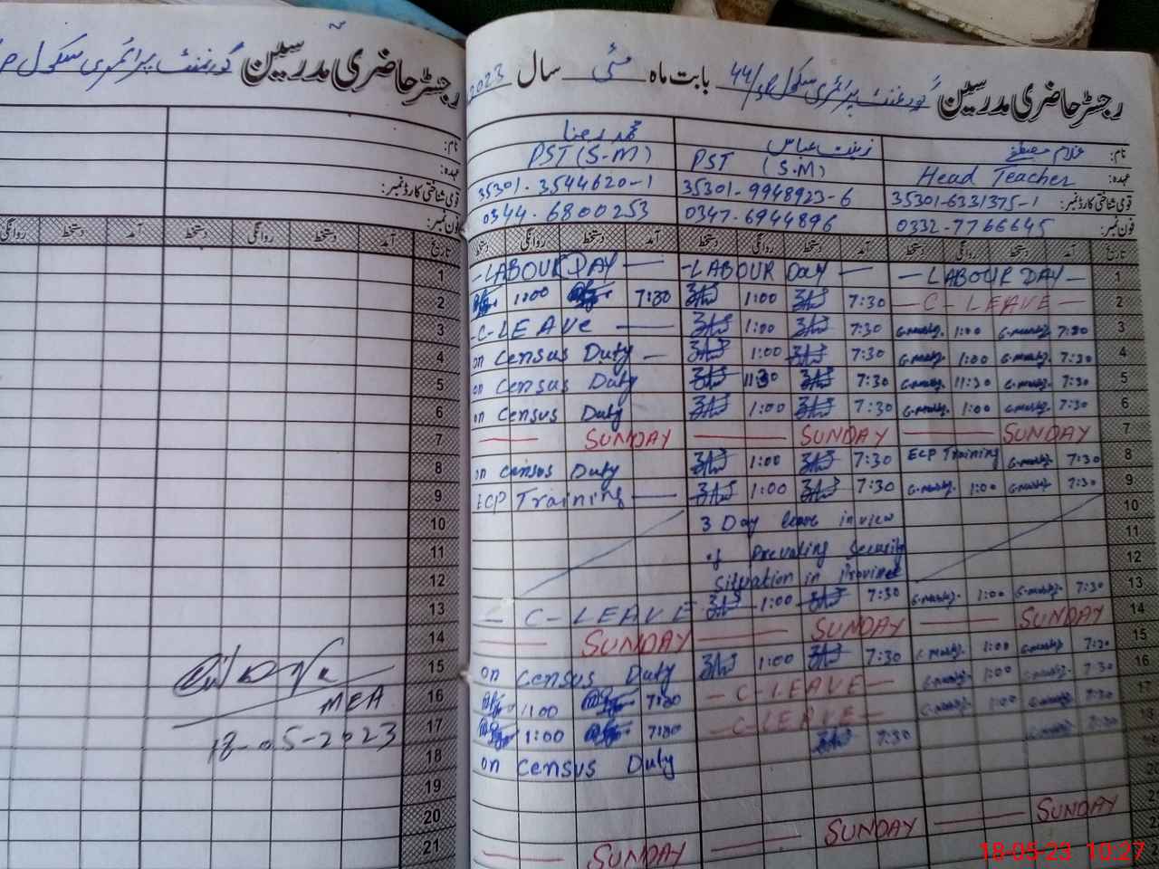| Name: GH**** MU**** Designation: (School Headmaster's/Headmistress's) PST Phone/Cell Number: 03**** |