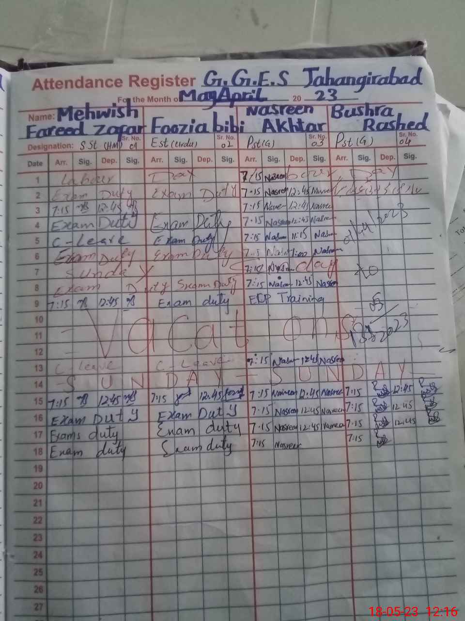 | 35**** | Me**** Fa**** Za**** | SST | Regular | 0 | 0 | 0 | 0 | 0 | 0 | 0 | 0 | 0 | Exam Duty |