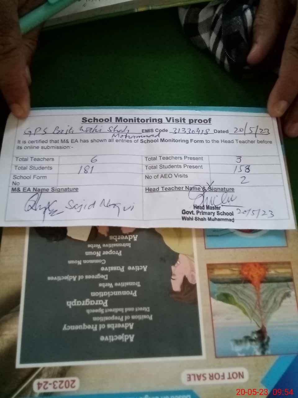 | Attendance Register | Head Teacher | MEA with School | Visit Proof |