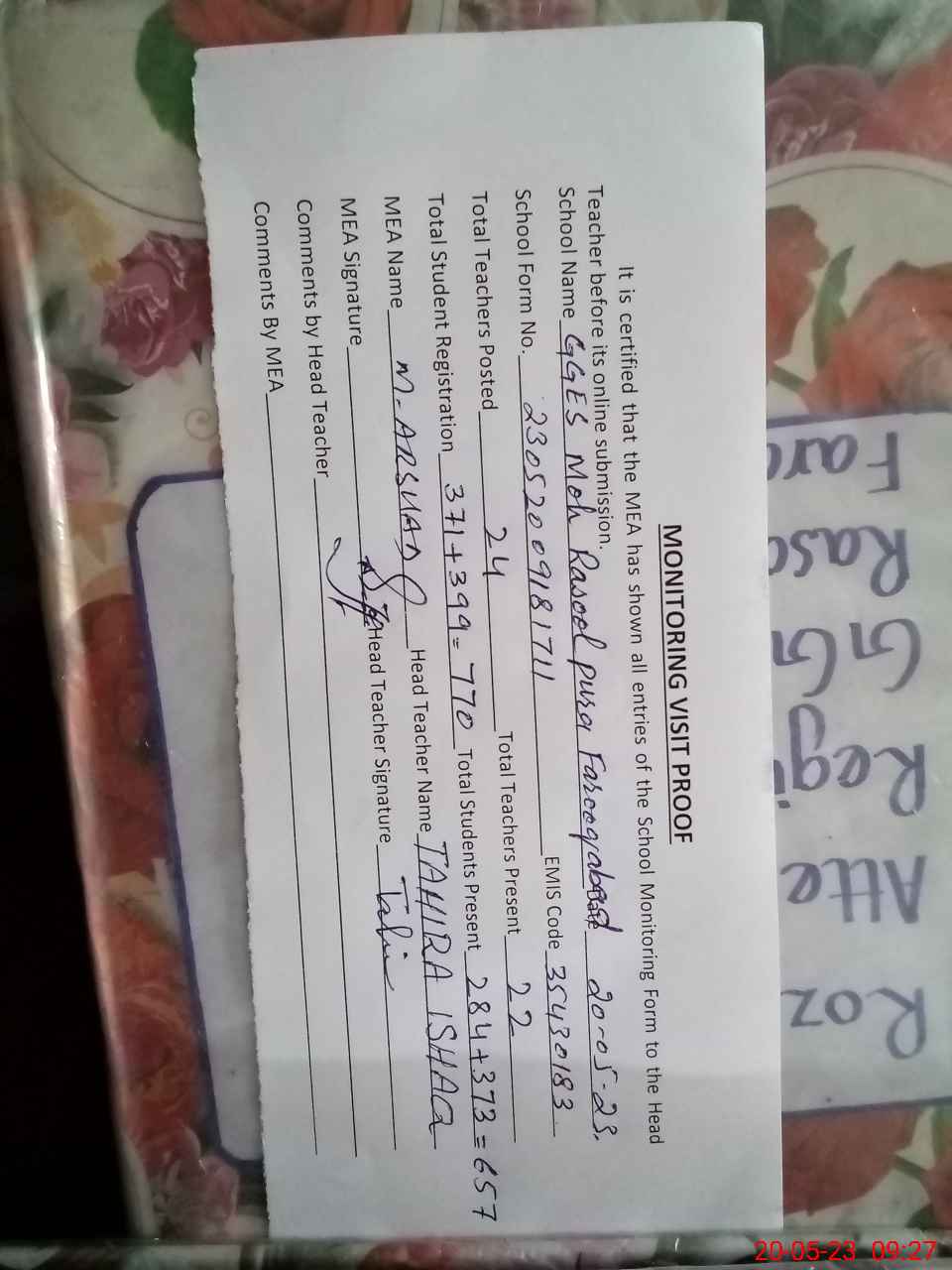 | EMIS Code: 35430183 | Name of School: GGES MOHALLAH RASOOL PURA | |||