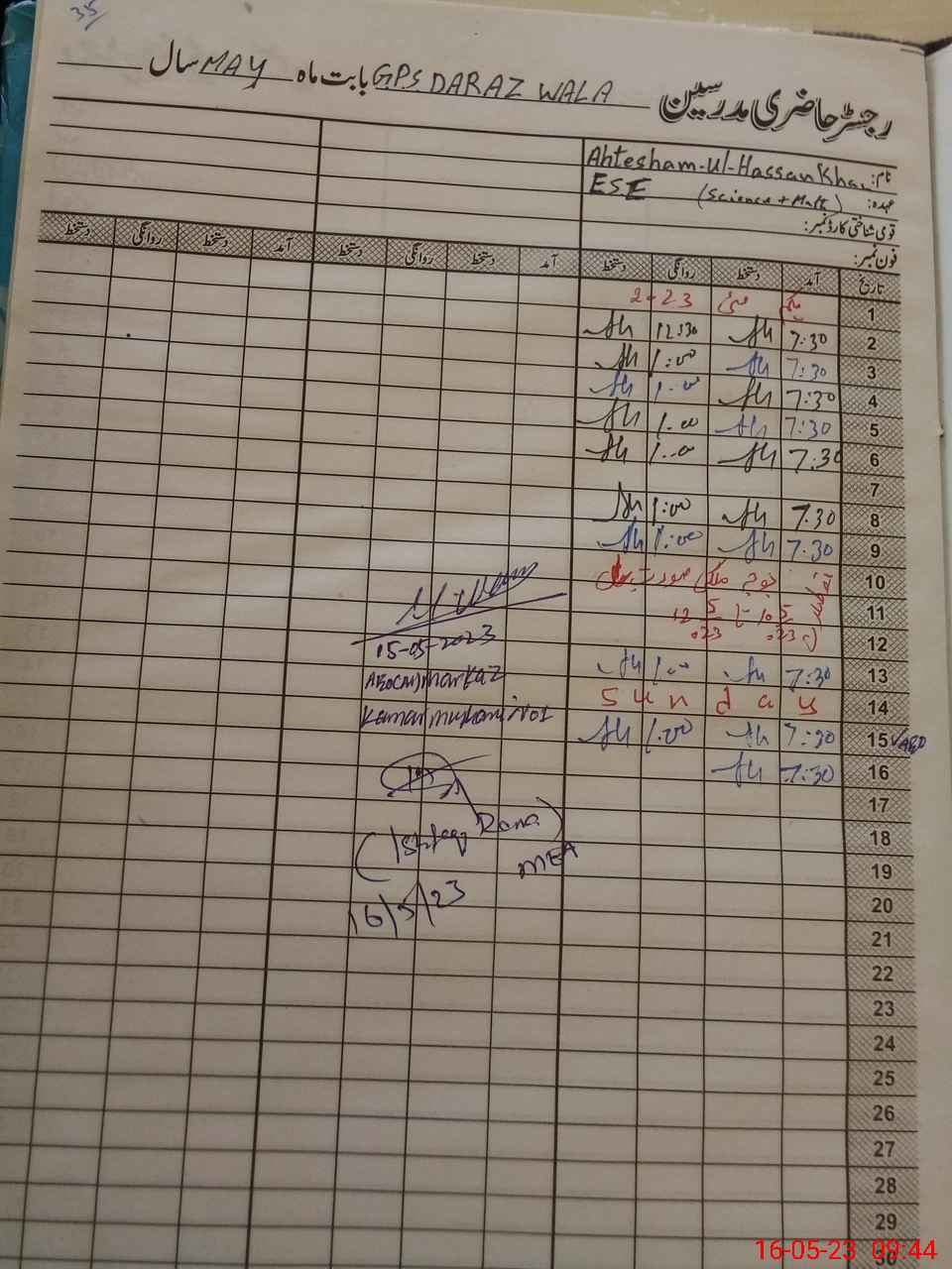 | Name: Az**** Na**** Kh**** Designation: (School Headmaster's/Headmistress's) PST Phone/Cell Number: 03**** |