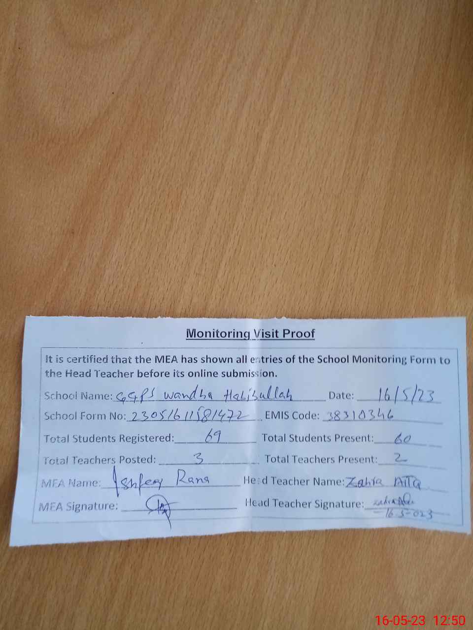 | EMIS Code: 38310346 | Name of School: GGPS WANDHA HABIB ULLAH KHAN WALA | |||