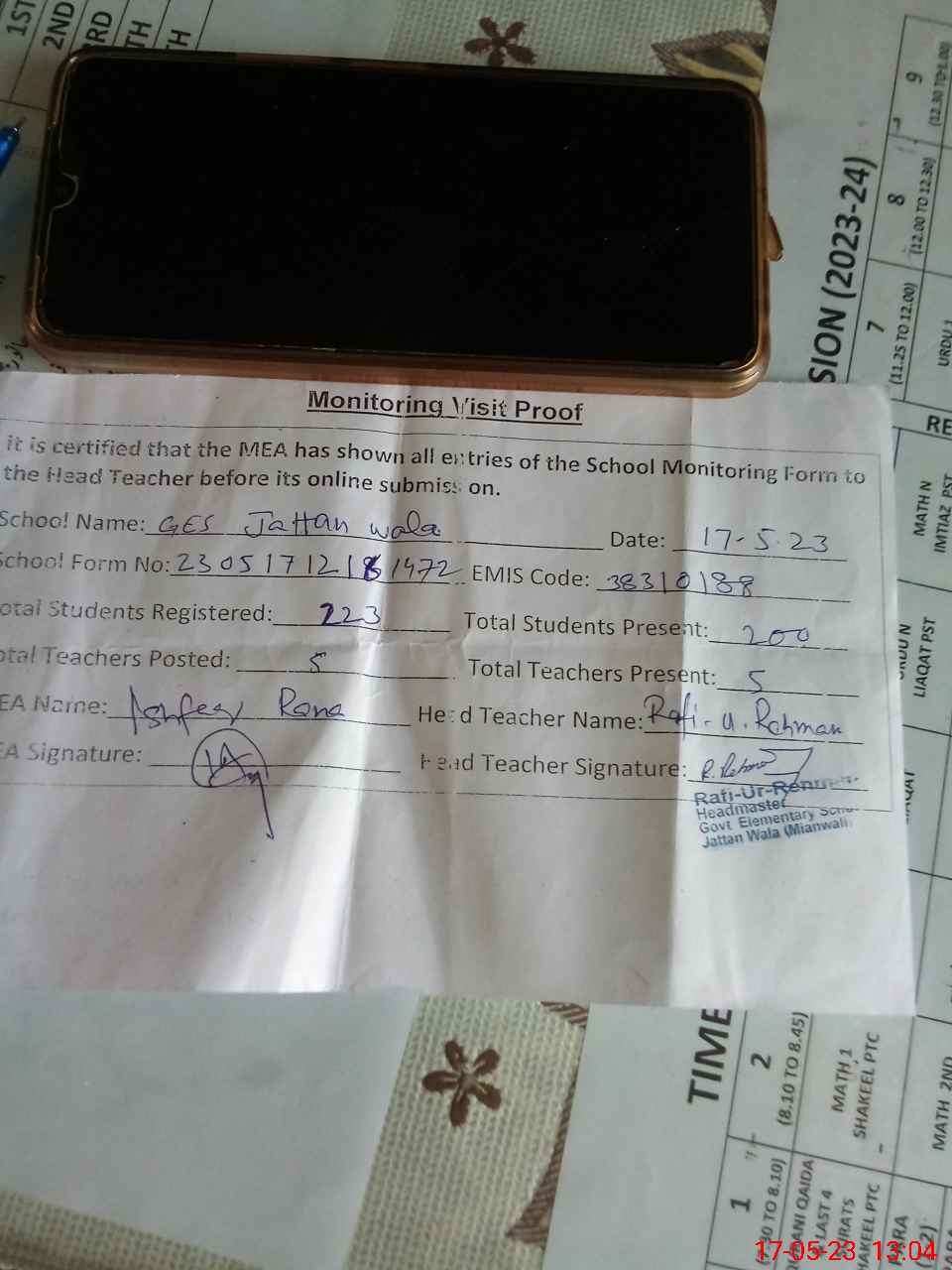 | EMIS Code: 38310188 | Name of School: GES JATTAN WALA | |||