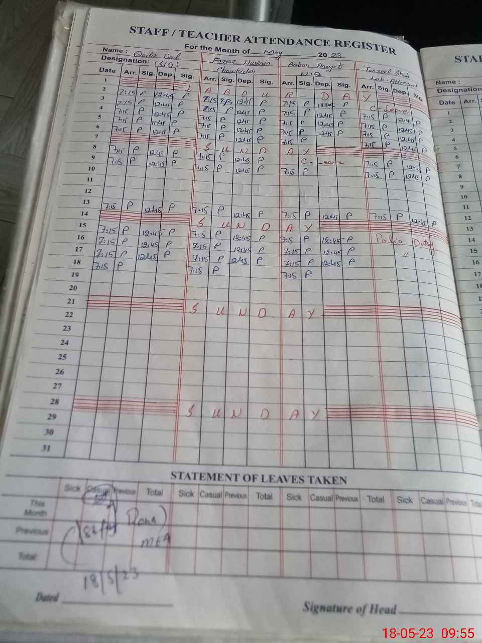 | 38**** | Ta**** Sh**** | LAB Attendant | 0 | 0 | 0 | 0 | 0 | 0 | 0 | 0 | 0 | Other | |