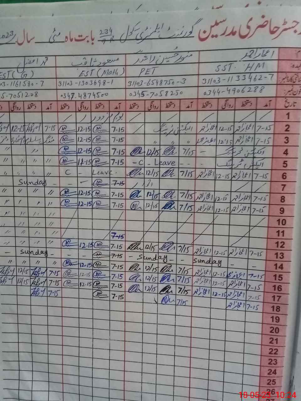 | Name: EJ**** AH**** Designation: (School Headmaster's/Headmistress's) S.S.T.(G) Phone/Cell Number: 03**** |